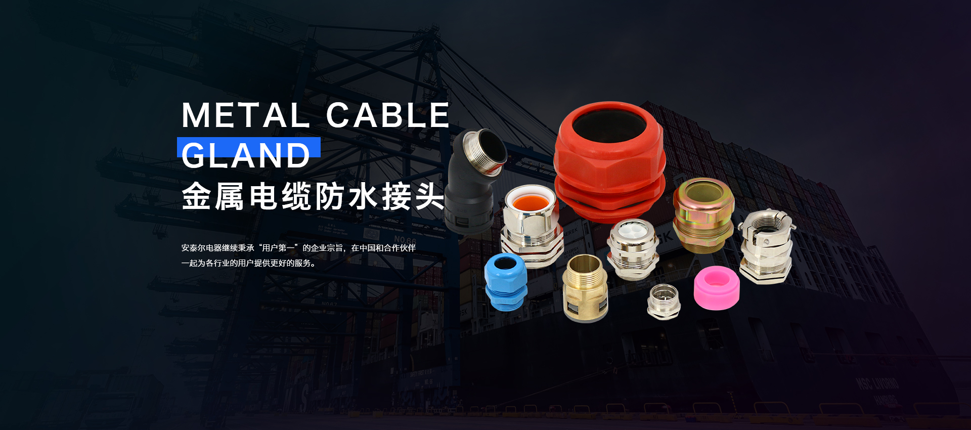 奉化市安泰爾電器有限公司成立于2009年,是一家專業(yè)生產(chǎn)電纜防水接頭、防爆格蘭頭、電纜填料函、電纜引入裝置、變徑環(huán)、堵塞件、船用配件、金屬/塑料電纜接頭等產(chǎn)品的新興企業(yè),公司擁有一支充滿朝氣的管理團(tuán)隊(duì),不斷優(yōu)化人力資源,提高管理力量。投入各種檢測工具,提高產(chǎn)品質(zhì)量,開發(fā)新產(chǎn)品。廣泛應(yīng)用于港口機(jī)械、機(jī)床、自動(dòng)化設(shè)備、油田配套、通訊設(shè)備、連接器、電力機(jī)車、太陽能光伏電子、造船等各大行業(yè)領(lǐng)域...[詳情]